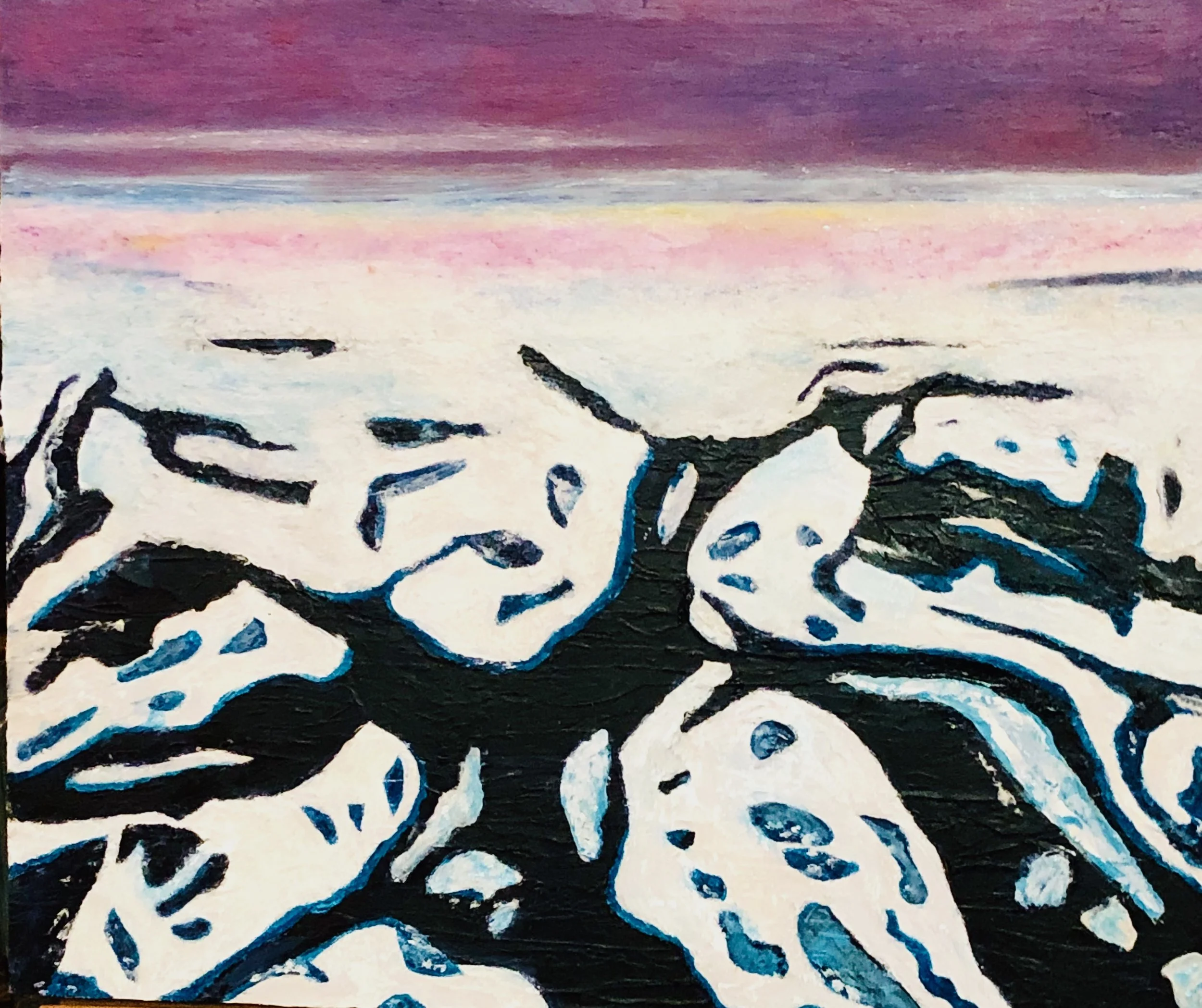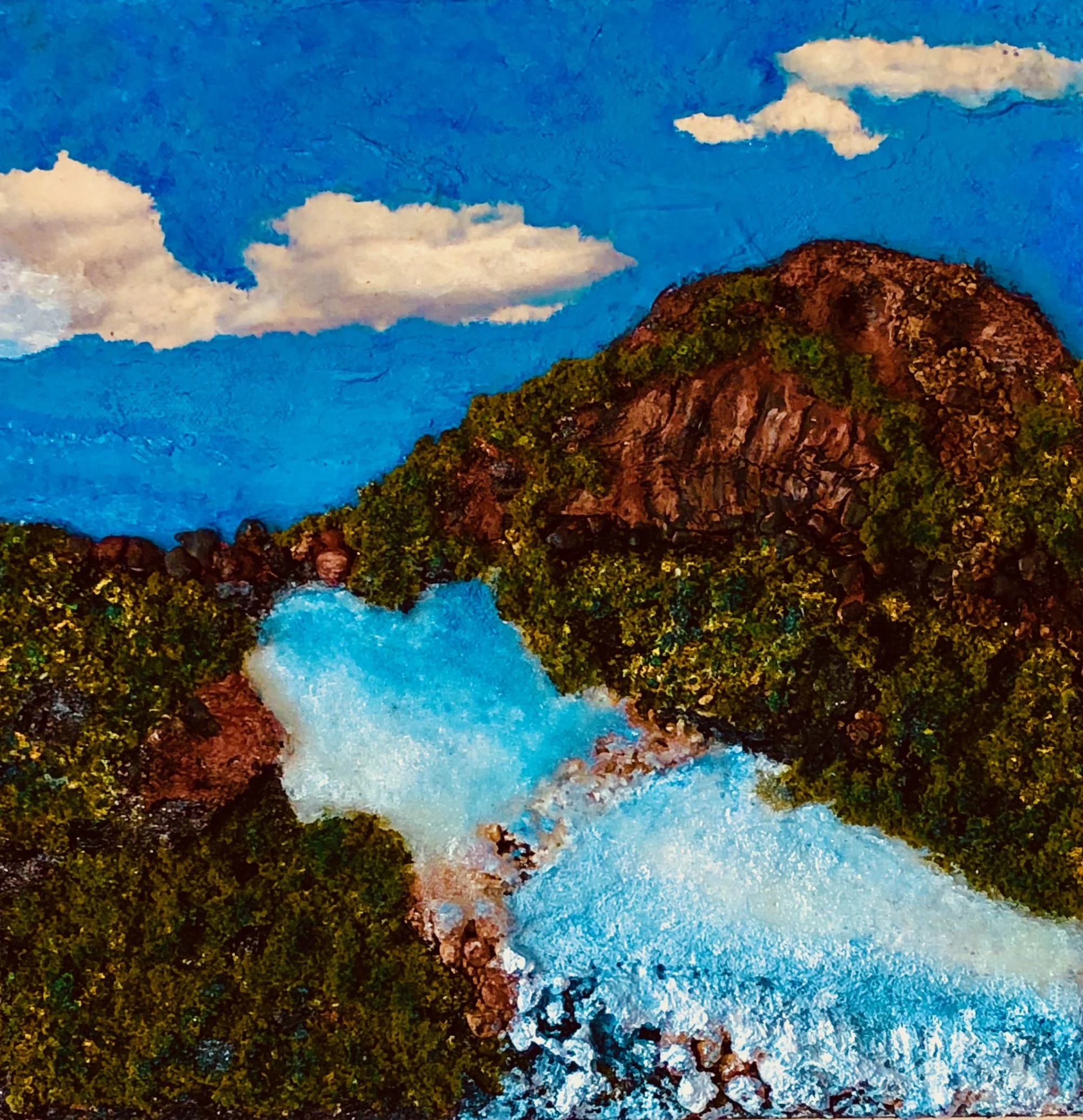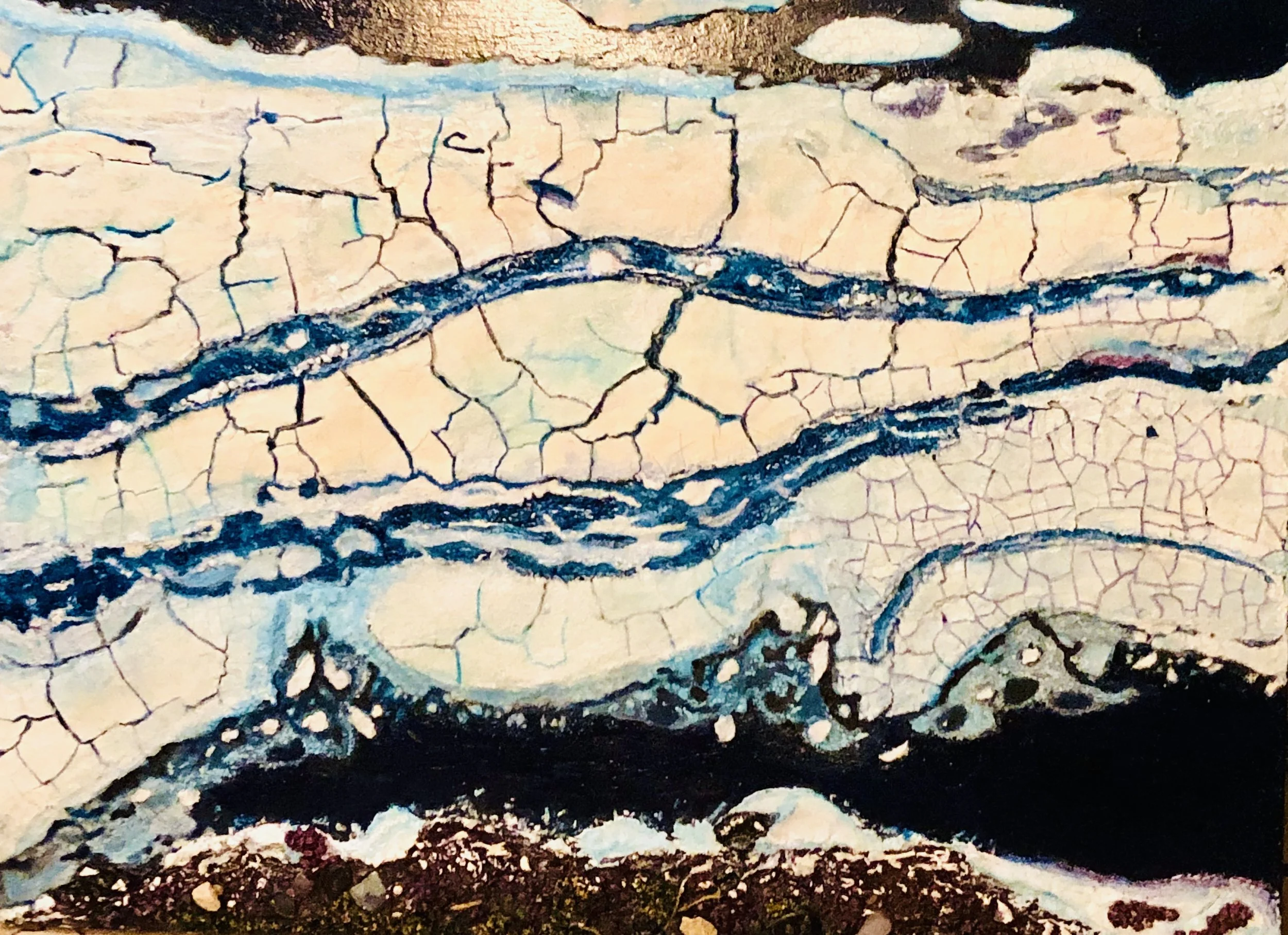 Vulnerable Beauty Acrylic, Gels, Stone on Cradled Board 20" x 16" 2019