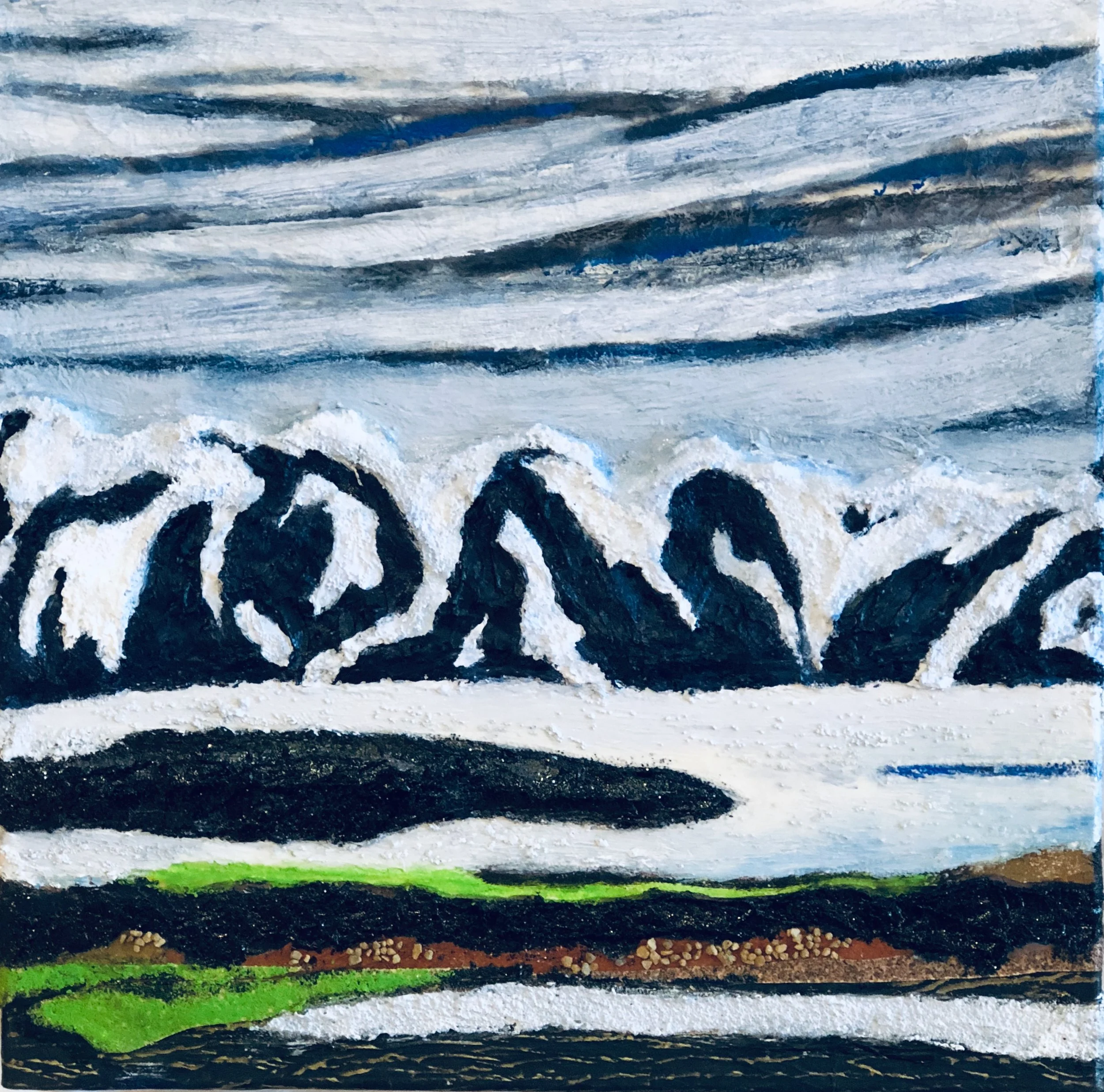 Awe and Trepidation II Acrylic, Gels, Stone, Pastel on Cradled Board 36" x 48" 2020